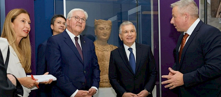 Находящийся с официальным визитом в Германии президент Узбекистана Шавкат Мирзиёев и президент Германии Франк-Вальтер Штайнмайер открыли в галерее Дже...