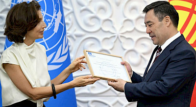 UNESCO Director-General Audrey Azoulay, during her official visit to Kyrgyzstan, presented President Sadyr Japarov with a certificate on the inclusion of the manuscript of the epic "Manas" in the version of Sagymbay Orozbakov's manaschy in the list of intangible heritage, the press service of the President of Kyrgyzstan reported. She emphasized with great satisfaction the active position of Kyrgyzstan in cooperation with UNESCO in the preservation of the cultural and historical heritage of mank...